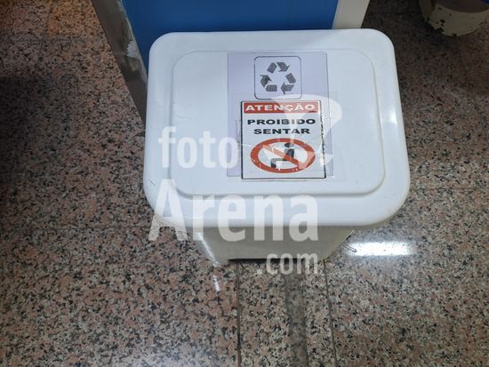2820672 Lixeira com adesivo de aviso de proibido sentar.