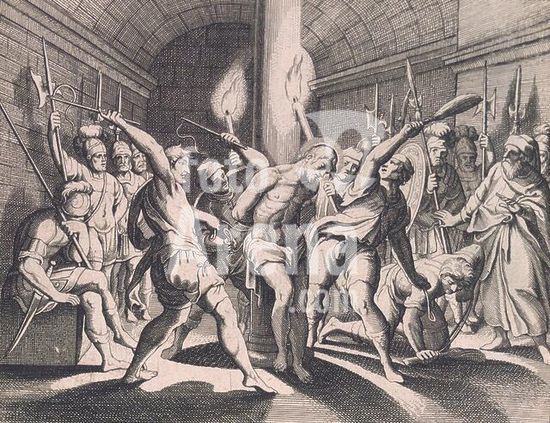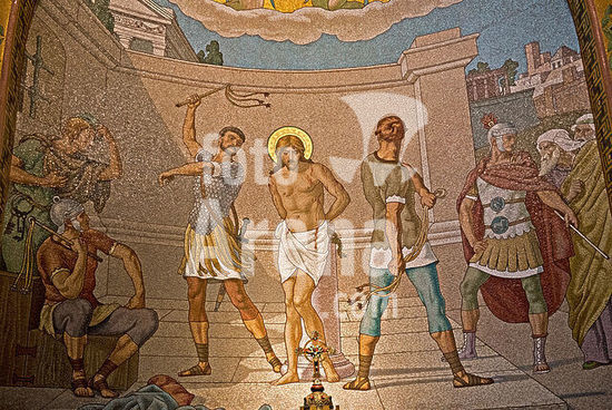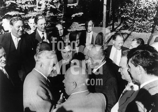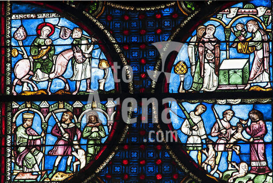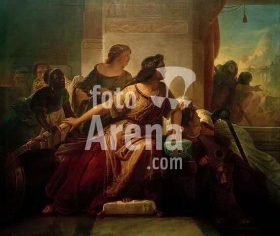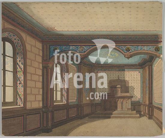 Mantua-Mantova (Lombardy, Italy), Palazzo Ducale, Castello S.Giorgio, Camera degli Sposi (frescos, c.1465-74, by Andrea Mantegna; 1431-1506).-Interior view looking northwest: west wall with "Meeting between Ludovico III Gonazaga and his son Francesco", north wall with "Court of Ludovico III".-Photo.