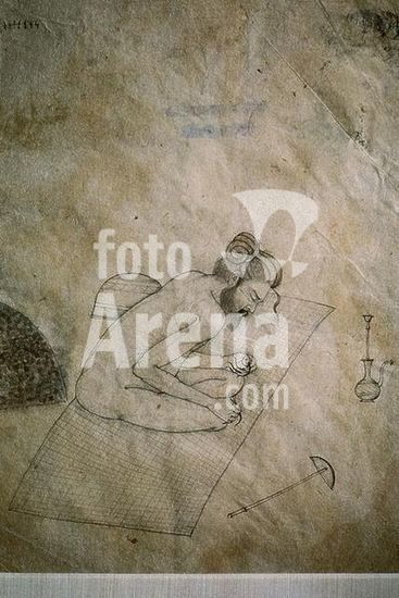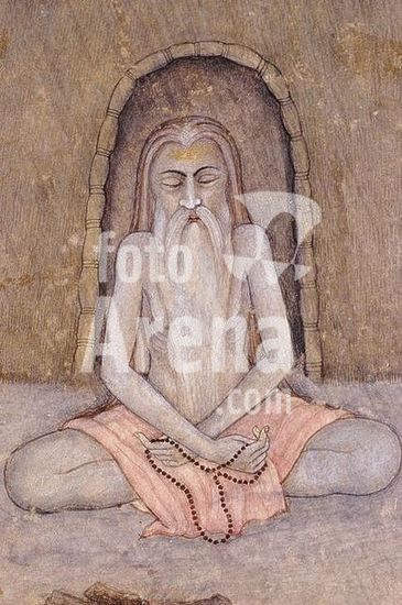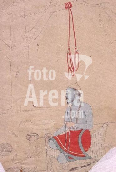 akg1109150 Indian miniature, Kangra school, 18th Century.-Goddess Kali standing on her husband Shiva ("The black one"; Hindu goddess of death, destruction and renewal).-Photo, undated. Museum: Private Collection., Privatsammlung.