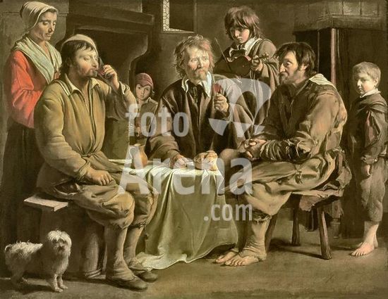 akg974075 Le Nain, Brothers (probably Louis, c.1593-1648). "Repas de paysans" (A Rustic Meal), 1642. Oil on canvas, 97 x 122 cm. MI 1088. Museum: Musée du Louvre., Paris.