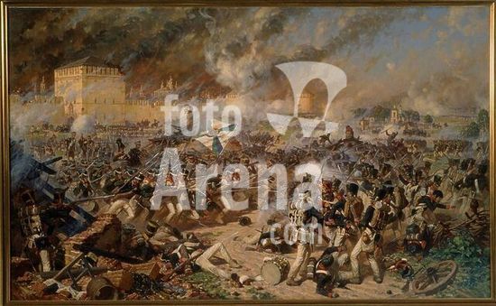 akg996525 Napoleonische Kriege / Russischer Feldzug 1812 / Schlacht bei Smolensk, 17.August 1812 (Sieg Napoleons über die Russen unter Barclay de Tolly und Bagration).-"Die Schlacht von Smolensk am 17. August 1812".-/ Gemälde, 1994, von Andrei Nikolajewitsch Awerjanow (geb.1948). / Öl/Lwd., 151 x 150 cm. Museum: Panoramamus. Schlacht v. Borodino., MOSKAU.