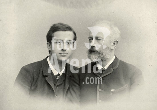 akg826593 Tschaikowski, Peter (Pjotr Iljitsch) russ.Komponist; Wotkinsk (Gouv.Wjatka) 25.4.1840-Petersburg 25.10.1893.-Peter Tschaikowski und der Pianist und Dirigent Alexander Siloti (1863-1945).-Photographie, 1888. Museum: Tretjakov Gallery., MOSKAU.