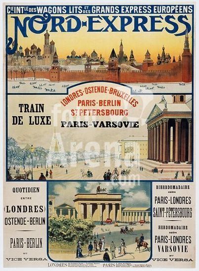 akg1702555 Verkehr: Eisenbahn.-"Nord-Exprss (...) " (Werbung für Luxus-Bahnreisen mit dem Nord-Express).-Plakat, Frankreich, 1899. Farblithographie, unbez. Druck: Imprimerie Courmont Frères, Paris. Privatsammlung.