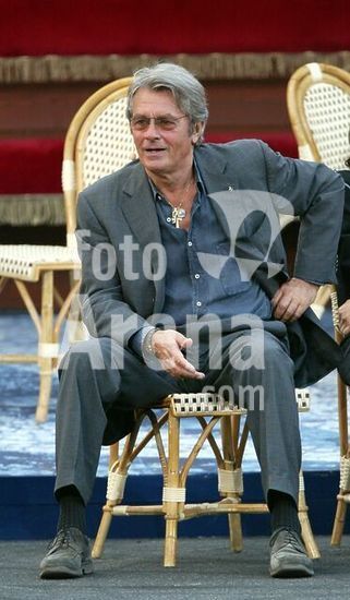 dpa7351307 (dpa) - French actor Alain Delon talks in a live broadcast of a German TV show "Wetten, dass ...?" in Disneyland Paris, 6 July 2002.