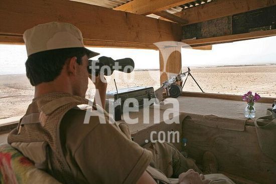 akg1083978 Afghan soldiers (ANA, Afghan National Army) guard the ISAF military camps from the outside. There are two rings outside the camp. The outerring is guarded by the ANA, the innerring by the Slovak army (Tarin Kowt, Uruzgan).