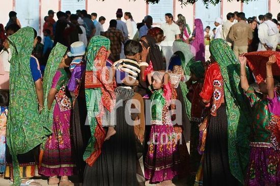 akg1150529 Völkerkunde / Indien. /-Im Dorf Dhrag bei Bhuj (Gujarat, Indien): Frauen der Hindu-Kaste der Ahir während eines Festtages.-Foto, 24.02.2009.