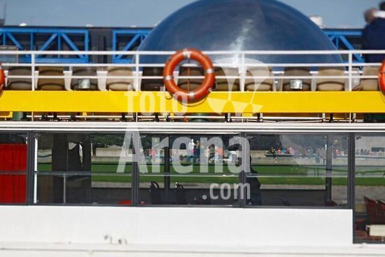 akg1718792 is passing in front of the globe of Cité des Sciences et de l'Industrie.