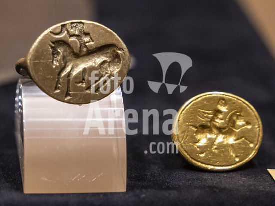 alb19453604 Thracian signet rings, gold, 4th century BC, Glojene, Lovech region, Bulgarian National Archaeological Museum, Sofia, Republic of Bulgaria, Europe.