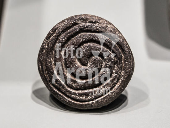 alb19453830 clay stamp seal, Maritsa, Haskovo region, Chalcolithic, fifth millennium BC, Bulgarian National Archaeological Museum, Sofia, Republic of Bulgaria, Europe.