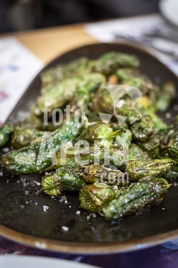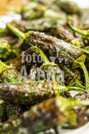alb19453622 Padrón peppers seasoned with coarse salt, Santiago de Compostela, province of La Coruña, Galicia,.