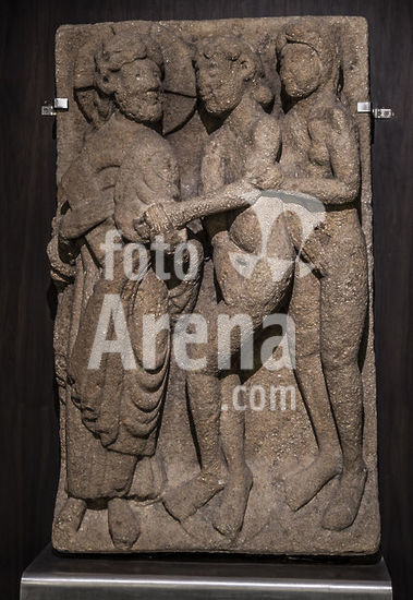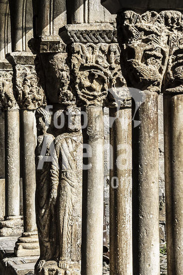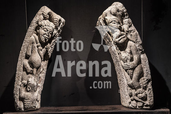alb19453827 voussoirs with the punishment of lust, year twelve hundred, granite with remains of polychromy, Santiago de Compostela Cathedral, Santiago de Compostela, province of La Coruña, Galicia,.