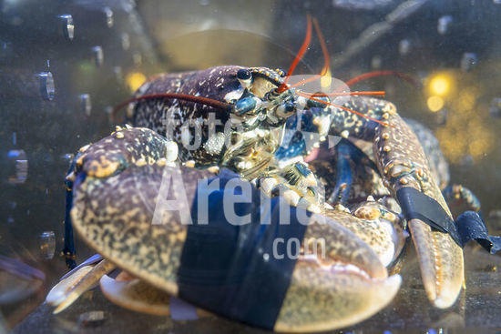 alb19453869 lobster with its claws tied, Santiago de Compostela, province of La Coruña, Galicia,.