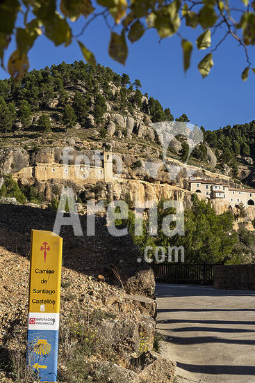alb19348404 Signage for the Camino de Santiago in the Valencian Community, Sanctuary of the Virgin of Balma, Zorita del Maestrazgo, Castellón, Valencian Community, Spain.