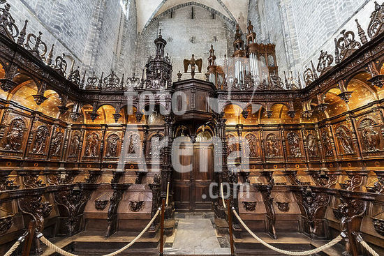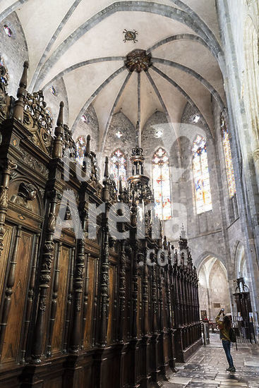 alb19453606 Renaissance choir boiseries (woodwork), cathedral of Our Lady of Saint-Bertrand de Comminges, Haute-Garonne, Midi-Pyrénées region, France.