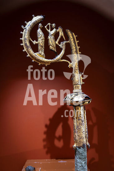 alb19453618 13th-century staff, gilded bronze, cathedral of Our Lady of Saint-Bertrand de Comminges, Haute-Garonne, Midi-Pyrénées region, France.
