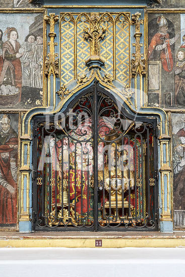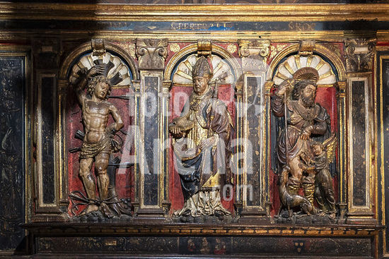alb19453833 Mausoleum of Saint Bertrand, paintings inspired by the bishop's book of miracles,, cathedral of Our Lady of Saint-Bertrand de Comminges, Haute-Garonne, Midi-Pyrénées region, France.