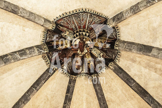 alb19453926 Decorative design on the keystone, cathedral of Our Lady of Saint-Bertrand de Comminges, Haute-Garonne, Midi-Pyrénées region, France.