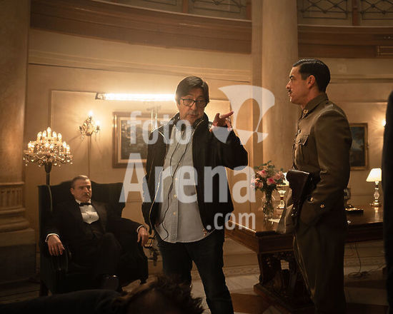 alb22444786 ALBERTO SAN JUAN, MANUEL GOMEZ PEREIRA and MARIO CASAS in LA CENA (2025), directed by MANUEL GOMEZ PEREIRA. English title: THE DINNER.