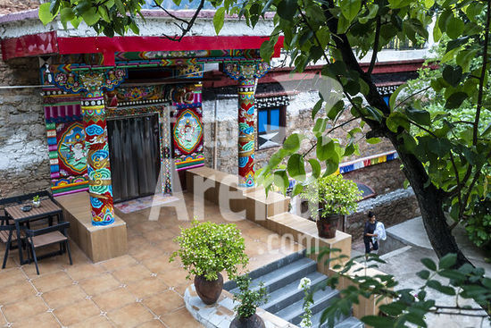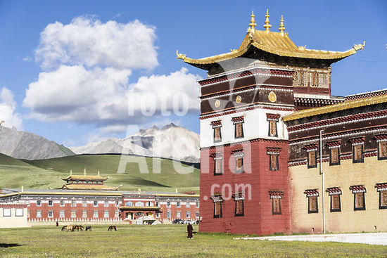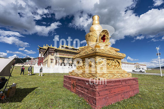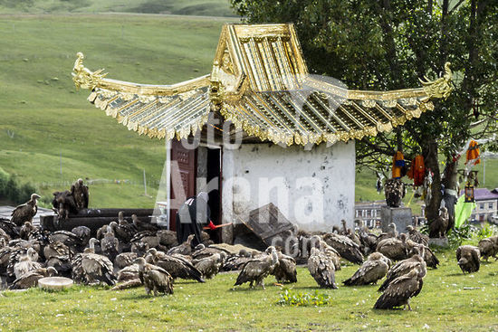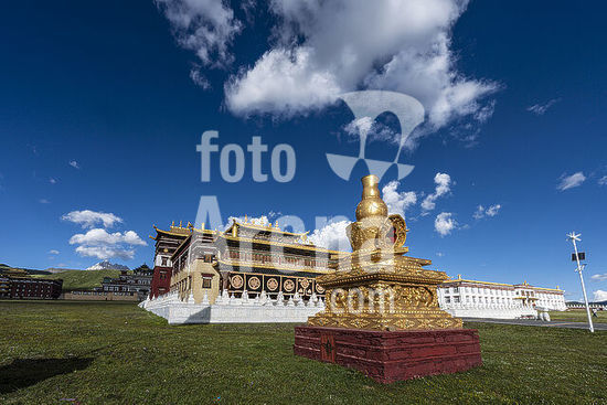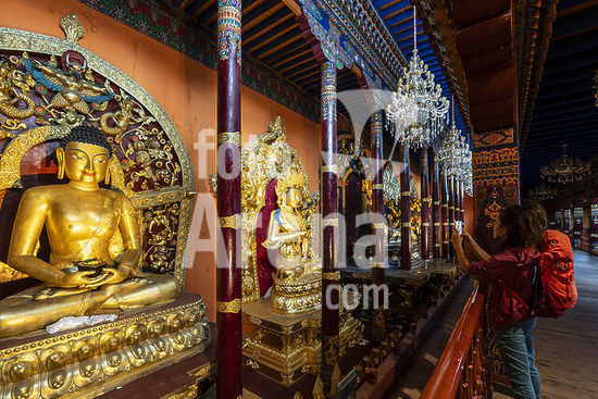 akg1108975 Tibet, 1300-1350.-Der Yidam Kalacakra ("Das Rad der Zeit").-Kupfer, feuervergoldet, Bemalung mit Kaltgold und Farben, Einlagen u.a. von Türkisen und Korallen, H. 59,5 cm, B. 47 cm. Zentraltibet, Kloster Shalu.