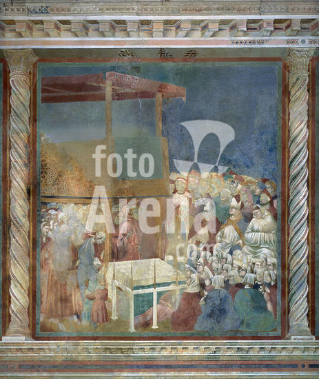 akg1003123 Giotto di Bondone; um 1266-1337. "Tod des Heiligen Franz von Assisi", um 1318/25. Aus dem Zyklus mit Szenen aus dem Leben des Heiligen Franz von Assisi. Fresko, 280 x 450 cm. Florenz, S.Croce, Cappella Bardi, linke Wand.