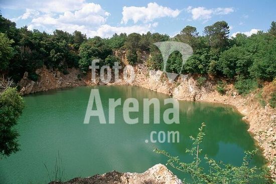 akg1029499 La Roquebrussanne (Dép.Var, Provence, France), Grand Laoutien (Doline; crater created by the collapse of a hollow area underground; diameter: ca. 130 m.).-View of crater.-Photo, undated.
