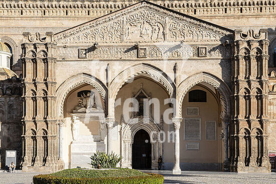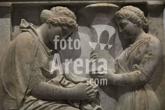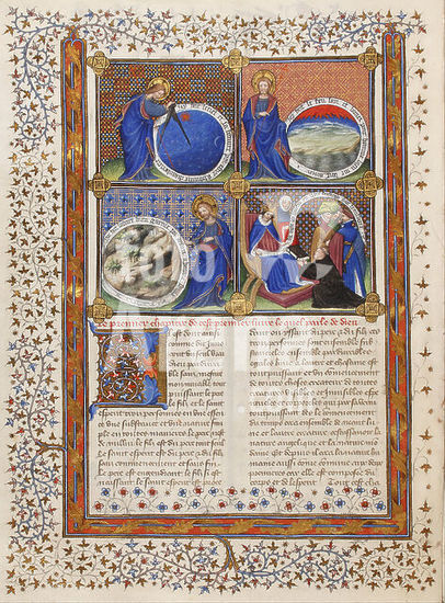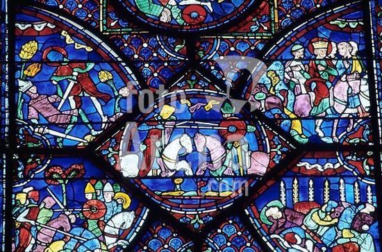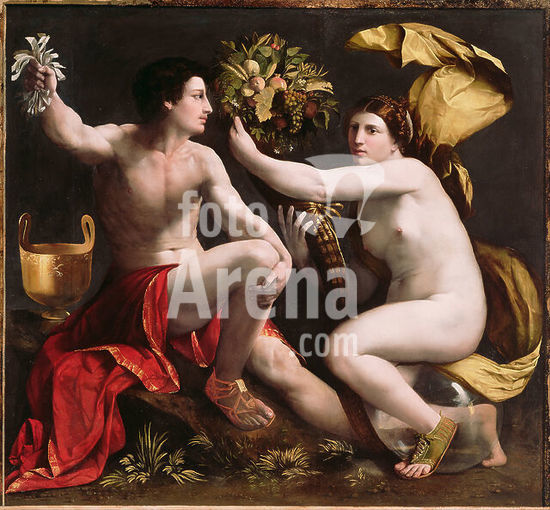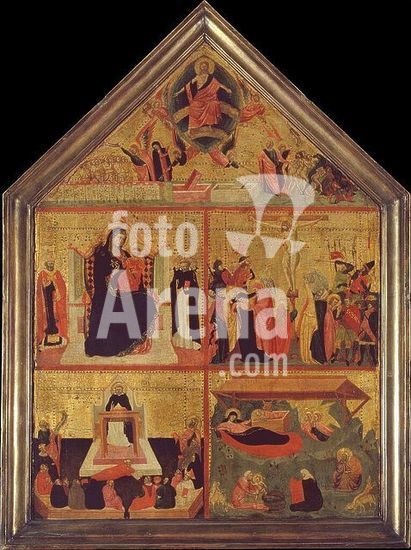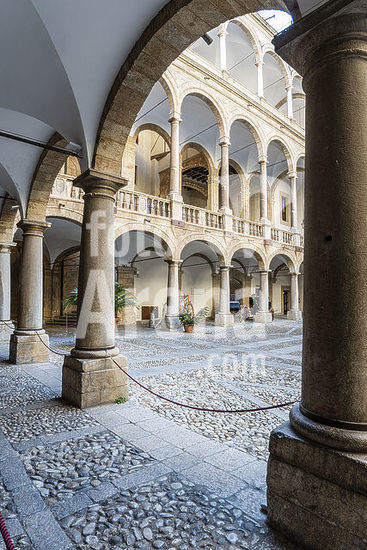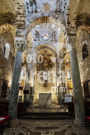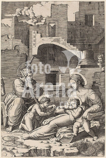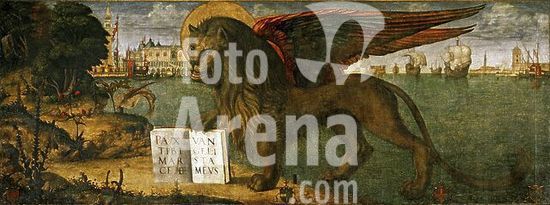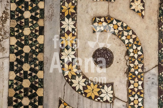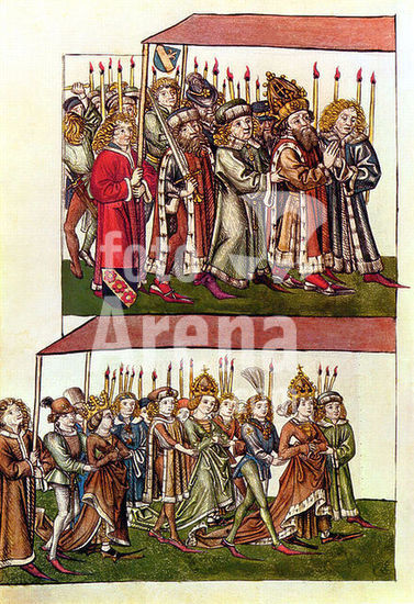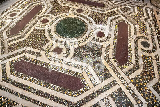 alb8909560 Mantua-Mantova (Lombardy, Italy), Palazzo Ducale, Castello S.Giorgio, Camera degli Sposi (frescos, c.1465-74, by Andrea Mantegna; 1431-1506).-Interior view looking northwest: west wall with "Meeting between Ludovico III Gonazaga and his son Francesco", north wall with "Court of Ludovico III".-Photo.