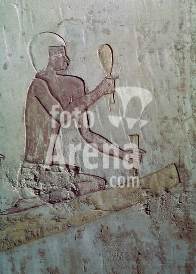 akg256520 Tuna al-Jabal - Hermopolis-West (Upper Egypt), tomb chapel of the High Priest Petosiris in the necropolis of Hermopolis. (early Ptolemaic period, 2nd half of the 4th century BC). Perfume makers at work. Relief in the vestibule, north wall. Limestone, painted.