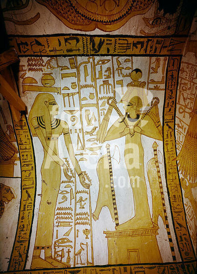 akg1269233 Deir el-Medina (Theben-West, Ägypten), Grab des Neferabu (TT 5; auch: Nefer-abet, Nekropolenarbeiter; Neues Reich, 20. Dynastie, um 1290-1070 v. u. Zt.). Nut vor Osiris. Wandmalerei. Foto, undat.