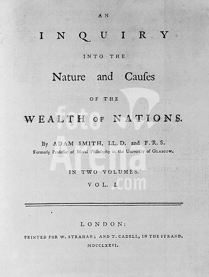 akg155555 Smith, Adam; Brit. moral philosopher and economist; 1723-1790. Works: An inquiry into the nature and causes of the wealth of nations. (1776). Title page of the first edition London (W.Strahan and T.Cadell) 1776.