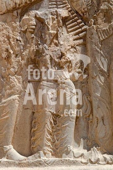akg1946662 NaqsheRostam: Felsrelief Nr. 8 (Investitur des Narseh; Narseh empfängt den Ring der Macht von Zoroastrer-Gott AHURA MAZDA dazwischen Zoroastrer-Göttin ANAHI.