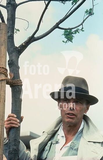 akg243249 Beuys, Joseph Artust, 1921-1986. "Documenta 7", Kassel, 19 June - 28 September 1982: Beuys with the first oak tree planted as part of "7000 Eichen" (7,000 Oak Trees). Copyright: For editorial use only.