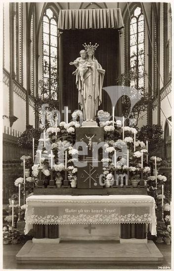 akg3880549 Breslau - Wroclwa (Polen), Vinzenzkirche/Franziskanerkirche (14. Jahrhundert; Innenraum barockisiert 1662-74). Innenansicht: Maialtar. Foto, um 1930. (Fotopostkarte, rückseitig beschrieben, handschriftlich datiert 1930er Jahre). Berlin, Sammlung Archiv für Kunst und Geschichte. Museum: Berlin, Sammlung Archiv für Kunst und Geschichte.