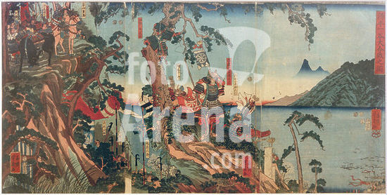 akg1112390 Japanese warships taking Port Arthur, Manchuria, during the Sino-Japanese War, 1894. Printed color lithograph reproduction of a 19thcentury illustration.
