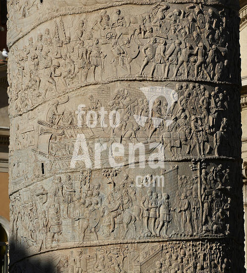 akg7775510 - La colonne Trajane est une colonne triomphale romaine située sur le forum de Trajan à Rome. Le bas-relief en spirale commémore la victoire de l'empereur Trajan sur les Daces.113 ap.JCHauteur: 40 m. Diamètre: 3,8 m.Marbre de Carrare.La conception est attribuée à l'architecte Apollodore de Damas.