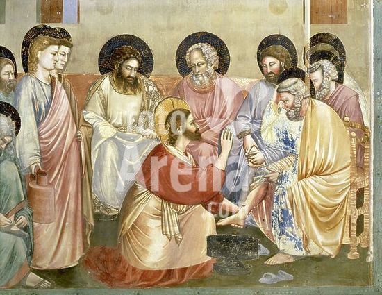 alb2033410 Giotto / 'Washing the Feet' (detail), 1304-1306, Fresco. Museum: Cappella degli Scrovegni, Pavoda. JESUS.