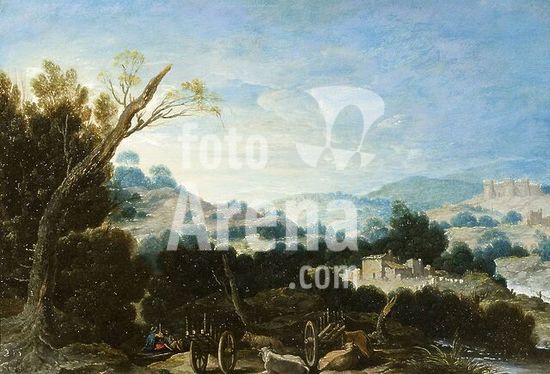 alb2068326 Francisco Collantes / 'Landscape with Sheperds', First half 17th century, Spanish School, Oil on copper, 26 cm x 38,8 cm, P08030. Museum: MUSEO DEL PRADO, MADRID, SPAIN.