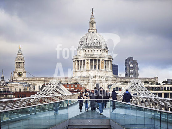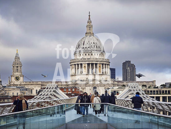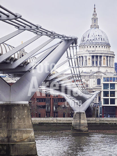 alb22009800 Millennium Bridge,. South facade of St. Paul's Cathedral, framed by the bridge supports, London, Great Britain.