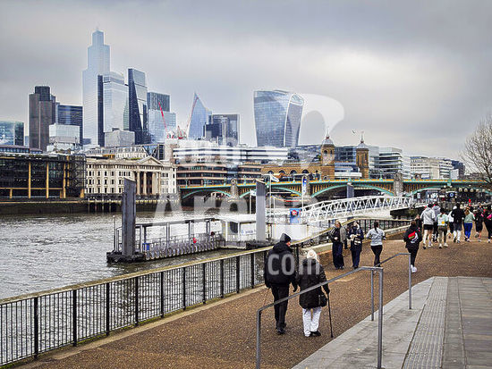 alb22009885 walking and running area near the River Thames and Millennium Bridge, London, Great Britain.