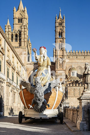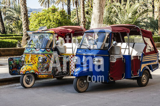 akg1567855 Völkerkunde / Indien. /-In Kumbakonam (Tamil Nadu, Süd-Indien): Fahrrad-Rikscha, bemalt mit christlichem Motiv der Maria mit Kind.-/ Foto, März 1993.