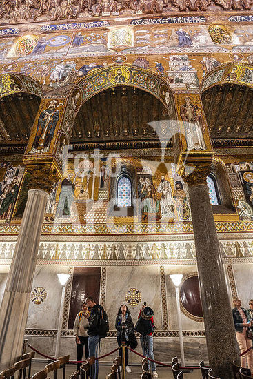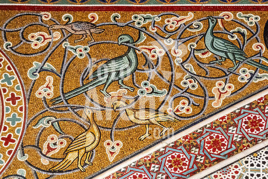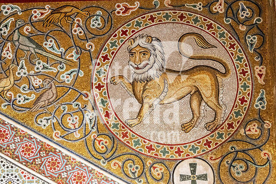 alb24588644 mosaic floor, made using the opus sectile technique, San Cataldo Church, 12th century, Palermitan buildings in the Arab-Norman style, World Heritage Site, Palermo, Sicily, Italy.