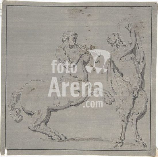 alb3606788 Bacchic Scene of Centaur Playing Horns and Satyr with Drum. Artist: Anonymous, French, 18th century. Dimensions: sheet: 7 x 7 1/16 in. (17.8 x 18 cm). Date: 18th century. Museum: Metropolitan Museum of Art, New York, USA.