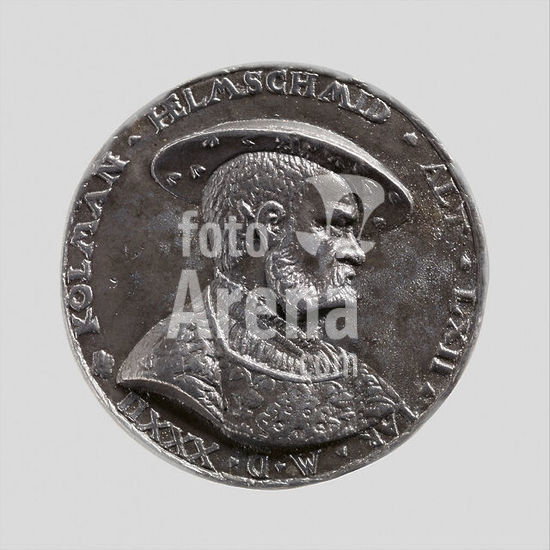 alb3630151 Medal of Kolman Helmschmid (1471-1532). Culture: German, Augsburg. Designer: After a model by Hans Kels the Younger (German, 1508/10-1565). Dimensions: Diam. 1 15/16 in. (50 mm); Wt. 1.6 oz. (44.96 g). Date: dated 1532.This is an exceedingly rare example of a Renaissance medal of an armorer, which celebrates the life and accomplishments of Kolman Helmschmid (1471-1532), one of the greatest armorers of sixteenth-century Europe, and one of the most important artists represented in the Metropolitan Museum of Art's holdings of arms and armor.Designed by the Augsburg medalist Hans Kels the Younger, the medal is among his earliest works, and one of only four examples known. The comparable examples are preserved in the Münzkabinett of the Staatliche Museen zu Berlin-Preussischer Kulturbesitz, Berlin; the Münzkabinett of the Herzog Anton Ulrich Museum, Brunswick; and the Staatliche Münzsammlung, Munich.The medal provides an eloquent testimony of the high standing of Kolman Helmschmid among the artists of his day, and of the recognized need to preserve his memory from oblivion. Renaissance medals were almost exclusively created in honor of princes and powerful noblemen and patricians. Kolman is not only one of very few European armorers of whom medals are known; he also is the earliest to have secured that distinction. Since the date on the medal is the year of his death, it is probable that the latter was commissioned posthumously, as a supplement to an earlier medal of him, which the Augsburg medalist Hans Schwarz had created in 1518. Museum: Metropolitan Museum of Art, New York, USA.