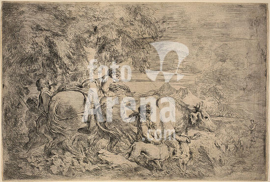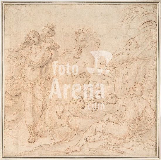 alb3632633 Erminia and the Shepherds (a scene from Torquato Tasso's Gerusalemme Liberata). Artist: Anonymous, Italian, 17th century. Dimensions: 8-15/16 x 8-15/16 in. (22.7 x 22.7 cm). Date: 1650-1700. Museum: Metropolitan Museum of Art, New York, USA.