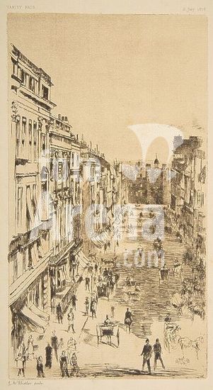 alb3633398 St. James Street. Artist: After James McNeill Whistler (American, Lowell, Massachusetts 1834-1903 London). Dimensions: sheet: 15 9/16 x 10 11/16 in. (39.5 x 27.2 cm)image: 11 x 6 in. (28 x 15.3 cm). Date: 1878. Museum: Metropolitan Museum of Art, New York, USA.