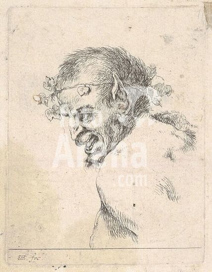 alb3638374 Plate 29: bust of a laughing satyr, facing left in profile, from 'Various portraits' (Recueil de diverses pièces servant à l'art de portraiture). Artist: Stefano della Bella (Italian, Florence 1610-1664 Florence); After Jusepe de Ribera (called Lo Spagnoletto) (Spanish, Játiva 1591-1652 Naples). Dimensions: Sheet: 5 7/16 x 4 1/4 in. (13.8 x 10.8 cm)Plate: 3 1/4 x 2 1/2 in. (8.2 x 6.3 cm). Series/Portfolio: 'Various portraits' (Recueil de diverses pièces servant à l'art de portraiture). Date: ca. 1647. Museum: Metropolitan Museum of Art, New York, USA.