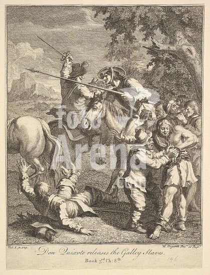 alb3652676 Don Quixote releases the Galley Slaves (Six Illustrations for Don Quixote). Artist: William Hogarth (British, London 1697-1764 London). Author: Illustrates Miguel de Cervantes Saavedra (Spanish, Alcalá 1547-1616 Madrid). Dimensions: sheet: 9 5/16 x 6 15/16 in. (23.7 x 17.6 cm). Date: 1756 or after. Museum: Metropolitan Museum of Art, New York, USA.