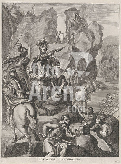 alb3653735 Plate 15: Ferdinand as Hannibal crossing the Alps; from Guillielmus Becanus's 'Serenissimi Principis Ferdinandi, Hispaniarum Infantis...'. Dimensions: Sheet (Trimmed): 14 11/16 × 10 15/16 in. (37.3 × 27.8 cm). Published in: Antwerp. Publisher: Johannes Meursius (Flemish, active 1620-47). Date: 1636.On January 28, 1635, the city of Ghent celebrated the entry of Cardinal-Infante Ferdinand of Spain, the recently appointed governor of the Southern Netherlands. A group of Flemish artists were commissioned to create paintings for the decoration of two triumphal arches erected in the city's main square for the occasion. Though the majority of these canvases are now lost, the engravings in Guillielmus Becanus's 'Serenissimi Principis Ferdinandi, Hispaniarum Infantis, S.R.E. Cardinalis, Triumphalis Introitus in Flandriae Metropolim Gandavum', Antwerp [1636], illustrate what the series looked like. The Metropolitan Museum of Art owns 34 plates from the set of 42. Museum: Metropolitan Museum of Art, New York, USA.