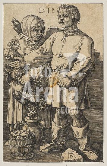 alb3680973 The Peasant Couple at Market (copy). Artist: After Albrecht Dürer (German, Nuremberg 1471-1528 Nuremberg). Dimensions: Sheet: 4 1/8 × 2 13/16 in. (10.4 × 7.2 cm). Date: n.d.. Museum: Metropolitan Museum of Art, New York, USA.