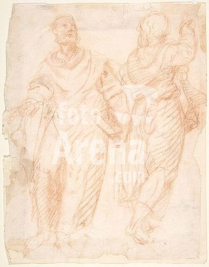 alb3681021 Two standing male figures (recto); two standing male figures (verso). Artist: Anonymous, Italian, 17th century. Dimensions: 8 7/16 x 6 11/16 in. (21.5 x 17 cm). Date: 1630-80. Museum: Metropolitan Museum of Art, New York, USA.