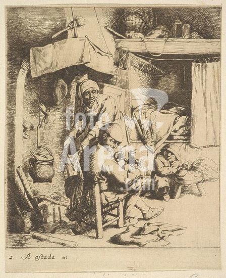 alb3683914 Father Feeding Child. Artist: After Adriaen van Ostade (Dutch, Haarlem 1610-1685 Haarlem). Dimensions: Sheet: 4 13/16 × 3 15/16 in. (12.3 × 10 cm). Date: 1610-85. Museum: Metropolitan Museum of Art, New York, USA.
